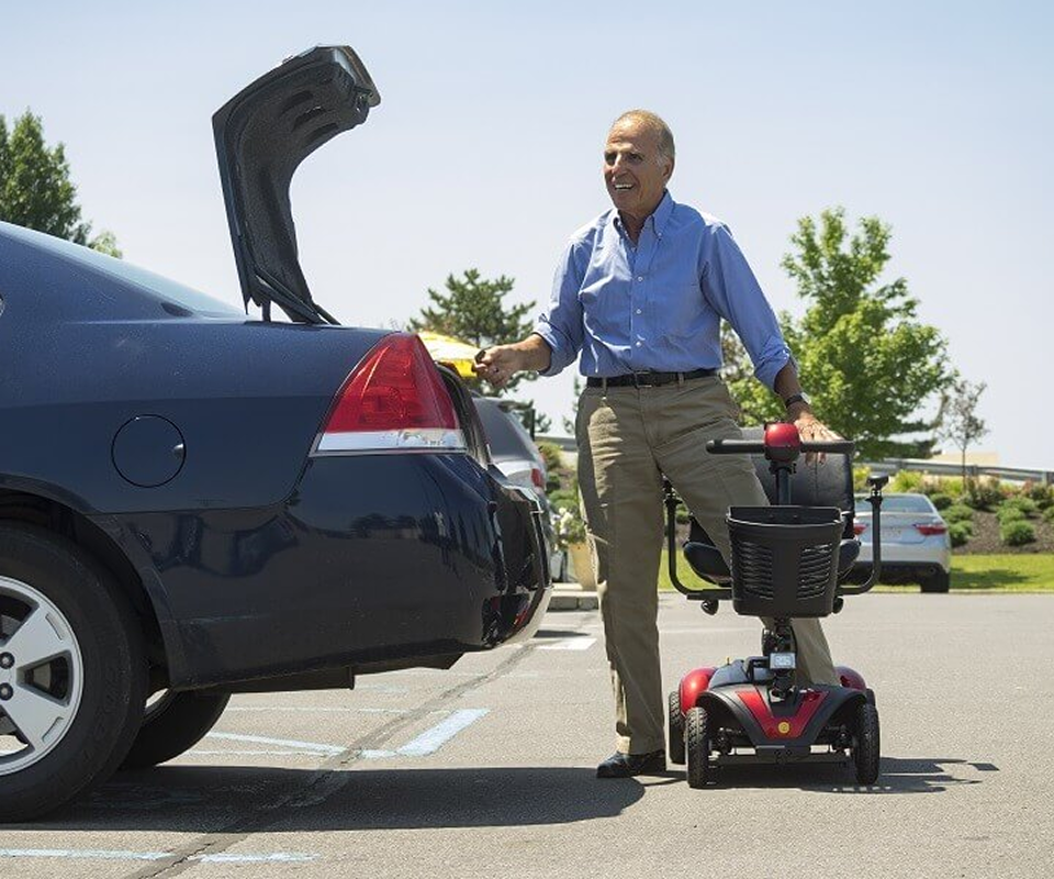 Este diseño de scooter de viaje es nuestra opción preferida en Mobility Almeria. A nuestros clientes les resulta mucho más fácil levantar piezas sueltas y más ligeras que levantar todo el peso del scooter simplemente plegado de forma más compacta. Además, es más fácil de guardar en el maletero del coche.